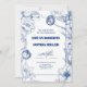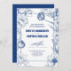Blått Blommigt, klassiskt bröllop Inbjudningar