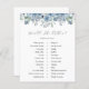 Spelkort för möhippa med en vattenfärgskaskad med blå blommigtar. Ett roligt sätt att interagera med duschgäster.