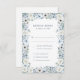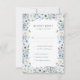 Blått Blommigt OSA kort. Gå in i en botanisk skönhetsträdgård och upptäck en fantastisk bröllop OSA-svarskort med vackra, handmålade blommigtar med vattenfärg som arrangeras i en underbar vintage ram. Den ömtåliga dammblått, kräm och vit ros och grönt eucalyptus greenery skapar en elegans, perfekt för din speciella händelse! Teckensnittet blått grått och nypa beröringar av blått kompletterar perfekt den tidslösa utformningen. Låt den här uttryckliga inbjudan uttrycka er roliga romantiska elegans och tidlös stil.