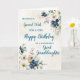 Ett vackert kort till din underbara barndotter på hennes födelsedag med elegant, blått och krämfärgade blommor.