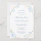 Inbjudningskort för möhippan för den blåa Blommigtens andedräkt. Utformningen framkallar en känsla av vår och en ny början med dess pastellnyanser. Blåfärgade blommar, vindruvor och löv ram texten på vit bakgrund. Kortets baksida är däremot en djup, dammig blått. Prova den här designen på elegantens pappra alternativ, t.ex. linne eller pärla. Den mjuka pappra kommer att öka blommarnas känslighet. Perfekt för en trädgård eller party under våren.