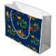Gör en gåva speciell med den här blåa blommigten i fågelpresentsäcken!