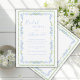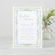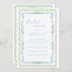 Vackblå vattenfärg, vit liten blommigt ram med grönt vattenfärg ram som omger underbart typsnitt och skript som görs i samordningen av färg möhippa inbjudan. En inbjudan till perfekt bröllop möhippa för alla säsonger.