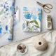 Blått Blommönster, Konstnärlig vattenfärg Presentpapper
