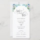 Bekvämt med den här eleganten Spara datumbokmärket. Utforma med den vackra frasen "Spara datumet" i modern handskriven kalligrafi. Ytlig, handmålad blommigt med blommor och löv i vita, dammiga blått och grönt toner. Det främsta centrala området i fodral är fritt att slå en helhet och försköna bokmärket med ett dekorativt band. Lägg till namn, datum, ställe och all annan extra-information som du vill ha. Tillbaka med information om blommigten som innesluter snyggten "nytt datum"-logotyp med "spara datumet"-frasen i modern kalligrafi, ditt datum och din brud och din groom namn.