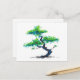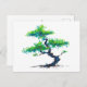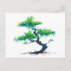 en traditionell vattenfärgsmålning av en bonsai i pulverblått och grönt färg på ett vykort