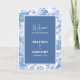 Den här designen har vackra, blå illustrationer av botaniska trädgårdsblommor i vintage. Texten i bröllop är ramad med ett motsvarande blått ram. Den här blåa blommigten skapar en elegant av land trädgårdskåran vid blommigt. Utformning av serviceprogram i elegant bröllop med modernt inslag. Det finns också möjlighet att matcha bröllopsinbjudningar och andra artiklar i kontorsartiklar.