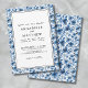 Blått Botaniskt Mönster Elegant Blommig Bröllop Inbjudningar