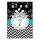 Blått och svart rand och det moderna blommönstret Bröllop Bordsnummer Card