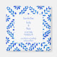 Spara datumet i bröllop Magnet. Medelhavets blå bakgrund. Blå text. Webbplats