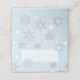 Vinterbröllopsmätning med veckors infällt platskort i en ljusblå isig med ett vitt textområde omgivet av vitt snöflingor. Anpassa för hand, varje kort för ditt bröllopsmottagande.