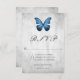 Elegant och enkelt Bröllop-responskort med blå fjäril mot grått grunge-bakgrund. Trendigets utformning är ett unikt val för ett modernt bröllop. Enkel att anpassa med din bröllop-information. Klicka på Anpassa om du vill söka efter fler anpassningsalternativ.