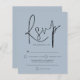 Ett ekonomiskt alternativ i BUDGET på en mindre storlek på 4,5 x 5,6 tum (110 lbs vikt), som är av samma tjocklek som ett vykort (är dock inte lämpligt för använda som vykort). OBSERVERA ATT DET FINNS EN inbjudan per lakan. Snyggten Budget Script Dusty Blue Bröllop OSA A anger typografi i svart för huvudrubrikens OSA som kompletterar resten av texten som du enkelt kan anpassa.
