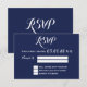 Blått och vitt bröllop OSA med elegant, med marin blå bakgrund och vit utbytbar text och dekorativ vit grafik