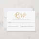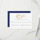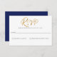 Elegant och moderna borstat gyllene skript brev, bröllop OSA kort. Kortets baksida, som visas i massivt blått färg, har två malltexter linjer för namn och datum.