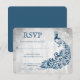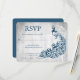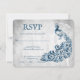 Skicka gästerna ett enkelt och elegant Blue Peacock Löv Vine-Bröllop OSA-kort med din inbjudan. OSA kort har en lätt grått-grumlig bakgrund med en pulserande blå påk med en löv-förskönning. Anpassa med svarsdatum och menyval.