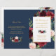 Blått Bröllopsprogram med Burgundisk Blommigt