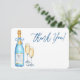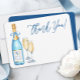 Skicka uppriktigt tack i stil med detta eleganta tackkort för bröllopsdusch. En del av kollektionen ”Something Blue Before I Do”, med en akvarell blå champagneflaska, bubblande glas och en delikat diamoring accent. Personifiera med brudens namn och evenemangsinformation för att samordna perfekt med din blåtema fest eller champagne dusch.