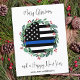 Skicka God jul hälsning till vänner och familj med det här unika blåradiga polisens julkort - Helgdag-andedräkt i USA:s amerikanska flagga i Polisblå färg, modern svartblå och vit design med skal och bär. Anpassa till namn. Julkortet är perfekt för polisfamiljer eller christmas-kort från polisavdelningen. COPYRIGHT © 2022 Judy Burrows, Black Hund Art - Med alla Höger reserverade. Blått budgetkort för julfransfrö