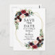 Blått Burgundy Blommigt Guld Geo Ram Spara datum Vykort