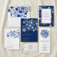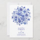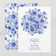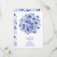 Börja din dag med blå chinoiserieblommor med ett övergripande blommigt mönster av akvarellblommor i en klassisk stil inspirerad av blå och vit porslin. Framsidan visar en indigofärgad blomsterbukett ovanför din text, i kombination med elegant serif-typografi och ett elegant "save the date" för en förfinad look. Denna romantiska bröllopsdesign är idealisk för par som älskar detaljer med blå blomsterbuketter och tidlös botanisk stil.