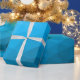 Blått cyanövertoningsgeometriskt nät mönster Trian Presentpapper