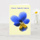 Det här hälsningskortet innehåller ett foto av en vild Pansy-blomma. Fotot har blivit artificiellt färgad, vilket har lett till en pansy med ljus- och mörk-nyanser av blått och blekens gult. Bakgrunden är blekens gult för att så mycket som möjligt visa den här blommans skönhet. På kortets framsida finns anpassadets blå text som du kan anpassa, skapar den lämplig för vem som helst och valfri tillfälle. Insidan av kortet är tom.
