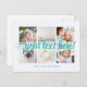 Skript med Heart Din anpassningsbar text 6 foton kollage turkos blue universal Postcard. Personlig 6-familjesammanfoto Universell Hälsning-vykort med snyggt fotokollage med 6 anpassat bilder, ditt hälsning-meddelande i elegant handskrivet skriptteckensnitt, ditt namn, datum, år, meddelande på baksidan i ett modernt och enkelt sans serif-teckensnitt.