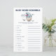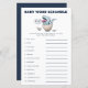 Kylt dinosaurietemegosknappsdusch baby ord med en illustration av blått t-rex-kläckning ur ett ägg. Listan över ord på detta kort gäller spädbarn, och den är uppdelad. Gästerna kommer att tävla, som kan lösa upp alla först! SVAR NYCKEL: 1. bilsäte 2. mjölk 3. lekplats 4. nappar 5. blöjor 6. rockstol 7. dagis 8. baby monitor 9. svalg 10. formel 11. gummiducky 12. barnvagn.