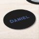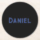 Blått eget namn på svart underlägg papper rund
