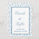 Bläddra gästerna enkelt med den här eleganten med blått blommigt-kort och bröllop-skylt för presenter. Designat att dirigera gäster till bord, ser det här tecknet till att de vet exakt vart de ska till ställe sina tankekort och presenter. Med ett sofistikerat botaniskt gräns och klassisk typografi blandas det sömlöst med tidslängd, vintage eller modern bröllop-dekoration. Anpassa med namn och bröllop-datum för en anpassningsbar.