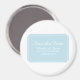Modern och chic Enkelt Elegant bröllop Spara datum magneter med en elegant blå biljett-symbol. Den här klassiska designen och snyggten är enkel att anpassa med dina bröllop-detaljer. Om du vill ha fler anpassningsalternativ klickar du på Anpassa.