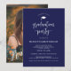 Den här inbjudan till studentfest är perfekt för högskolan eller college student tittar för ett blått, enkelt och modernt skript inbjudan med ett foto på fullt på baksidan. Anpassa dig med all information om grad party, informationsklass och lägg till en favoritfotosession i studenten porträtt. Designad av Simple Desert Design Studios for Zazzle. Skicka ett meddelande till oss om du vill anpassa det här eller någon av våra designar så att de passar dina behov.