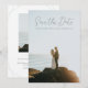 Elegant, boho sparar datumkortet med ett modernt dammigt blått linjer. Anpassa med din bröllop-information med den lättredigerade mallen med ett romantiskt skriptteckensnitt och ett modernt sans serif-teckensnitt. Byt ut fotot på framsidan mot ditt eget. Byt sedan tillbaka fotot mot ditt eget och uppdatera webbadressen till bröllop. Kolla in matchande objekt i samlingen "Blue" Eucalyptus".