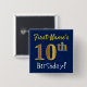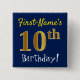 Blått, faux Guld 10:e födelsedagen, med eget namn Knapp