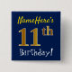 Blått, faux Guld 11:e födelsedagen, med eget namn Knapp
