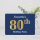Blått, Faux Guld 80:e Födelsedagsfesten + Anpassat Inbjudningar