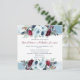 Inbjudan till elegant bröllop med delikat blå vattenfärgsbakgrund och krävande blommigt-buketter som innesluter din Bröllop-detaljinformation. Vattenfärgade blommor och löv i en vacker blandning av dammiga blått, marint, burgundöst , lila och magenta. Tillbaka med vacker blå vattenfärgstäckning. En del av vår "kelestial Blooms"-samling med en mängd olika samordningsprodukter tillgängliga.