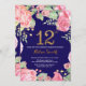 Blommigt 12:e: Kvinnoinbjudan på födelsedagen. Vattenfärgad botanisk Blommigt blomma. Guld Glitter. Blåbakgrund. Rosa Peonies Blommigt Flowers. Barn Girl Dam Birthday. Om du vill göra ytterligare anpassningar klickar du på knappen "Anpassa" och användor verktyg som är utformat för att ändra mallen.