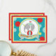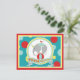 Den roliga elefanten med partyhatten som balanserar på boll med fågeln med hatten, perched på dess baksida med polka pricker trycket tackar dig att card.