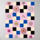 Kontrollerade Daisy - Retro Colorful Flower Check Mönster - Checkerboard Aestehtic - Rosa, Blue, Cream and Black.