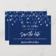 En elegant Spara datumkortet för en födelsedagsfest. En marin blå dekorerad med konetti. Anpassa och lägg till datum och namn/ålder. Texten: Spara datumet skrivs med ett stort trendig-handskript i stil.