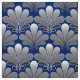 Tyg i ett mönster för vintageart décotapet som baseras på en stylized havssnäcka i en satänglutning av ljust till medelsilvergrått/grå färg på en djup kobolt, slösar bakgrund som betonas med vit