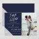 Silver-typografi på anpassadets marinblock silver glitter färg och faux geometric rand-chic sparar datumet silver, bröllop för perfekt, elegant snyggt bröllop, , lägg till ditt foto.