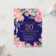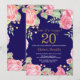 20th födelsedaginbjudan för blom- överrrakning för kvinnor. Botanisk blom- blomma för vattenfärg. Guld- glitter. Rosa pionblommigtblommor. Vuxen födelsedag. Marinblå bakgrund. Behaga klickar "skräddarsy den" knäppas och använder vårt designverktyg för att ändra denna mall för mer ytterligare customization.