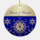 Minns att din speciella dag med denna härliga festliga marin och kungliga blått med guld- snöflingor (för UTSKRIVAVET) fauxglitter rundar den formade keramiska första minnessakprydnaden för jul tillsammans, som kan skräddarsy med namnen av bruden och brudgummen, och året. Du kan skräddarsy texten till den spelar ingen roll något att säga dig önskar och använder dem som en bröllopfavör på din vinter eller jul som gifta sig eller som dekorationer för din venuehöjdpunkter eller dekor. **** PLEASE är säker att din text förläggas var du önskar den, som den ska trycket ut, som den visas på ditt, övervaka. Zazzle ska INTE korrekt något. Den matchar också visade nedanfört för bröllop inbjudan. Om du skulle något liknande ett olikt, forma, eller om du behöver någon hjälp, behaga e-posten niteowlstudio@gmail.com.