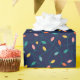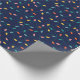 Den blå julklappen som är papper med rött, gult, grönt, rosa färgad Julafton ljus mönster.