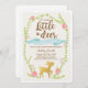 ♥ gullig och rolig baby showerinbjudan för A för en baby shower. ett hjorttema med blommor. Blåttfärger för en pojkebaby shower.