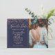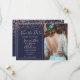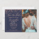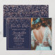 Ro konetti marinblått spara datumfotona med typsnitt av elegant, faux ro guld foil konetti och geometric ram på en redigerbar marin blå bakgrund.