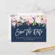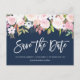 Blått för rosa-blommigt spara datumet vykort
